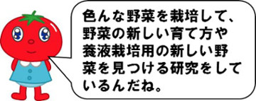 次世代の農業を考え、環境に配慮した養液リサイクルシステムや、植物残さ処理装置、また、新しい栽培技術である「量的施肥制御法」の試験を行っています。