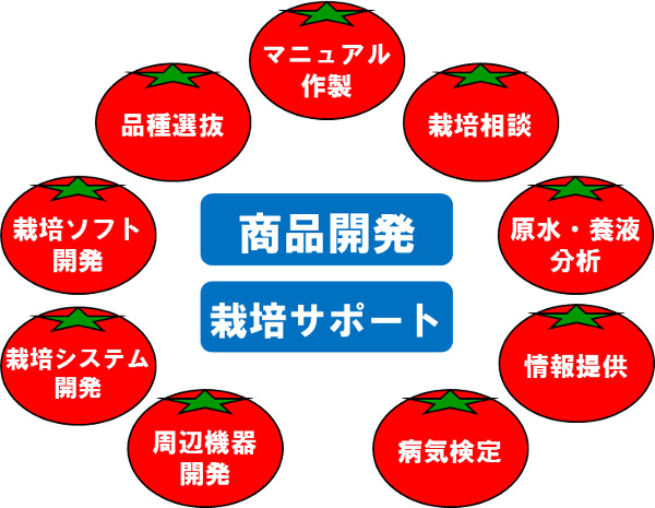 カネコ種苗(株)では、養液栽培を研究する独自の研究組織「開発部」を設立しています。開発部では、養液栽培システムとそれに伴う栽培技術や高機能制御装置、養液栽培用オリジナル種子を開発し、業界をリードしてきました。また、時代の要求に先駆け、環境に配慮した養液リサイクルシステムや植物残さ処理装置など、様々な商品を送り出してきました。新技術の開発に向けて、日夜努力しています。